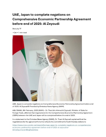 (CEPA) between the UAE and Japan will be completed before the end of 2025.