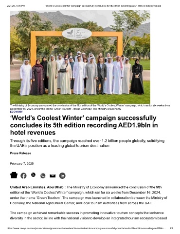 2/24/25, 4:36 PM ‘World’s Coolest Winter’ campaign successfully concludes its 5th edition recording AED1.9bln in hotel revenues