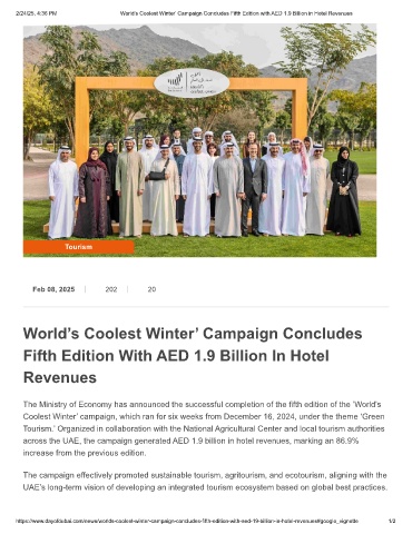 2/24/25, 4:36 PM World’s Coolest Winter’ Campaign Concludes Fifth Edition with AED 1.9 Billion in Hotel Revenues
