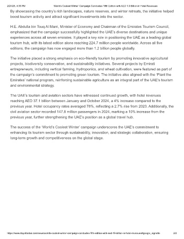 2/24/25, 4:36 PM World’s Coolest Winter’ Campaign Concludes Fifth Edition with AED 1.9 Billion in Hotel Revenues