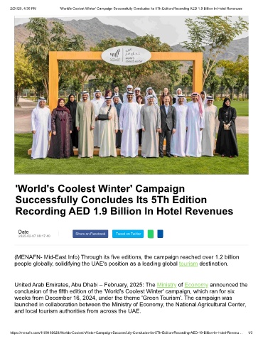 https://menafn.com/1109180629/Worlds-Coolest-Winter-Campaign-Successfully-Concludes-Its-5Th-Edition-Recording-AED-19-Billion-In-Hotel-Revenu… 1/3