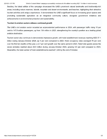 2/24/25, 4:37 PM ‘World's Coolest Winter' campaign successfully concludes its 5th edition recording AED 1.9 billion in hotel revenues