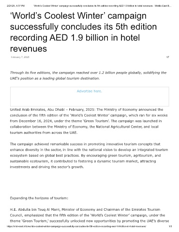 2/24/25, 4:37 PM ‘World’s Coolest Winter’ campaign successfully concludes its 5th edition recording AED 1.9 billion in hotel revenues - Middle East B…