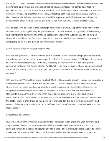 2/24/25, 4:37 PM ‘World’s Coolest Winter’ campaign successfully concludes its 5th edition recording AED 1.9 billion in hotel revenues - Middle East B…