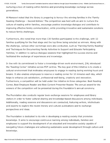 4/15/25, 10:52 AM Family Development Foundation launches cultural initiatives through Zayed Humanitarian Library - Middle East Business News an…