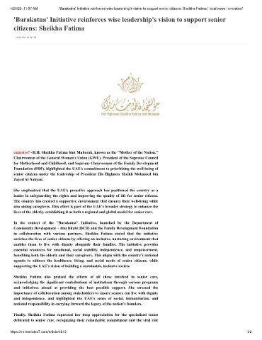 4/25/25, 11:07 AM 'Barakatna' Initiative reinforces wise leadership's vision to support senior citizens: Sheikha Fatima | local news | emirates7