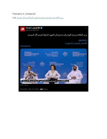 Publication: X – Emirates 24 Link: لصوملا راثآ ميمرتل ةيلودلا دوهجلا ناضرعتسي وكسنويلا ةريدمو ةفاقثلا ريزو