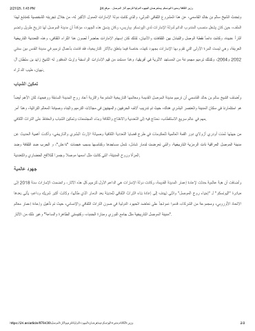 اذﮭﻟ ﻊﺑﺎﺗﻣﻛ ﺔﯾﺻﺧﺷﻟا ﮫﺗﺑرﺟﺗ لﻼﺧ نﻣ ،ﮫﻟ رﺑﻛﻷا لوﻣﻣﻟا تارﺎﻣﻹا ﺔﻟود تﻧﺎﻛ يذﻟاو ،ﻲﻟودﻟا ﻲﻓﺎﻘﺛﻟا عورﺷﻣﻟا اذھ نﻋ ،ﻲﻣﺳﺎﻘﻟا دﻟﺎﺧ نﺑ مﻟﺎﺳ ﺦﯾﺷﻟا ثدﺣﺗو