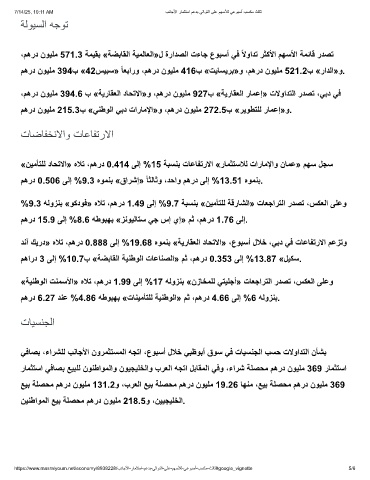 ﻲﻓﺎﺻﺑ ،ءارﺷﻠﻟ بﻧﺎﺟﻷا نورﻣﺛﺗﺳﻣﻟا ﮫﺟﺗا ،عوﺑﺳأ لﻼﺧ ﻲﺑظوﺑأ قوﺳ ﻲﻓ تﺎﯾﺳﻧﺟﻟا بﺳﺣ تﻻوادﺗﻟا نﺄﺷﺑ