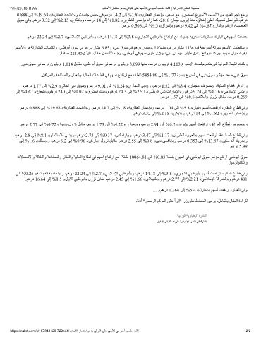 ،ﻢھرد 2.8 ﻰﻟإ %8.1 «رﺎﻤﺜﺘﺳﻼﻟ ﻲﺑد»و ،ﻢھرد 2.73 ﻰﻟإ %0.37 «ﺲﻜﻣارأ»و ،ﻢھرد 3.47 ﻰﻟإ %1.17 «ناﺮﯿﻄﻠﻟ ﺔﯿﺑﺮﻌﻟا» ﻢﮭﺳأ ﺖﻌﻔﺗرا ،ﺔﻋﺎﻨﺼﻟا عﺎﻄﻗ ﻲﻓو