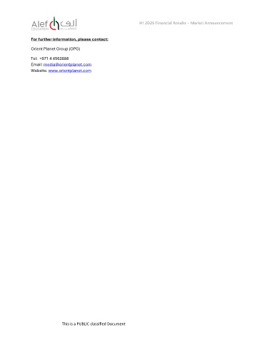 H1 2025 Financial Results - Market Announcement For further information, please contact: Orient Planet Group (OPG) Tel: +971 4 4562888 Email: media@orientplanet.com Website: www.orientplanet.com This is a PUBLIC classified Document