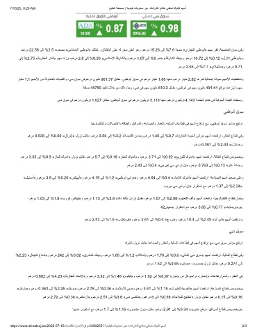 ﻰﻟإ %2.75 «ﺔﯾرﺎﻘﻌﻟا رادﻟا» مﮭﺳ دازو ،مھرد 2.8 ﻰﻟإ %0.36 «ﻲﻣﻼﺳﻹا ﺔﻗرﺎﺷﻟا»و مھرد 1.07 ﻰﻟإ %6 وﺣﻧﺑ «ﺔﻗرﺎﺷﻟا كﻧﺑ»و ،مھرد 16.72 ﻰﻟإ %0.12 «لوﻷا ﻲﺑظوﺑأ»و