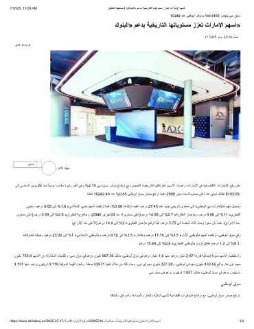«ﺔﻗرﺎﺷﻟا كﻧﺑ»و ،مھرد 23.22 ﻰﻟإ %1 «ﻲﻣﻼﺳﻹا ﻲﺑظوﺑأ»و ،مھرد 9.72 ﻰﻟإ %1.5 «رادﻟا»و ،مھرد 17.76 ﻰﻟإ %3.5 «لوﻷا ﻲﺑظوﺑأ» مﮭﺳأ تﻌﻔﺗرا ،ﻲﺑظوﺑأ قوﺳ ﻲﻓو