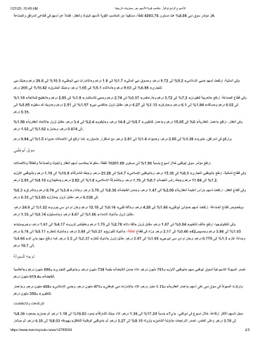 %4.94 «دﻧآ يإ» مﮭﺳ ﻊﻔﺗرا ﺎﻣﻛ .مھرد 3.3 ﻰﻟإ %2.37 «زﺎﻐﻠﻟ كوﻧدأ» لوزﻧ لﺑﺎﻘﻣ ،مھرد 2.47 ﻰﻟإ %1.65 «ﻲﺟرﯾﻧإ ﻲﺳ يد مإ نإ»و ،مھرد 0.775 ﻰﻟإ %1.3 «زﺎﻏ ﺔﻧاد»و
