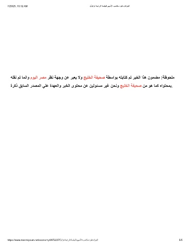 ﮫﻠﻘﻧ مﺗ ﺎﻣﻧاو موﯾﻟا رﺻﻣ رظﻧ ﺔﮭﺟو نﻋ رﺑﻌﯾ ﻻو ﺞﯾﻠﺧﻟا ﺔﻔﯾﺣﺻ ﺔطﺳاوﺑ ﮫﺗﺑﺎﺗﻛ مﺗ رﺑﺧﻟا اذھ نوﻣﺿﻣ :ﺔظوﺣﻠﻣ