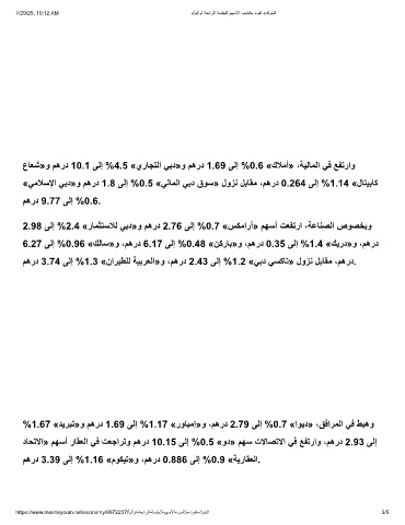 2.98 ﻰﻟإ %2.4 «رﺎﻣﺛﺗﺳﻼﻟ ﻲﺑد»و مھرد 2.76 ﻰﻟإ %0.7 «سﻛﻣارأ» مﮭﺳأ تﻌﻔﺗرا ،ﺔﻋﺎﻧﺻﻟا صوﺻﺧﺑو