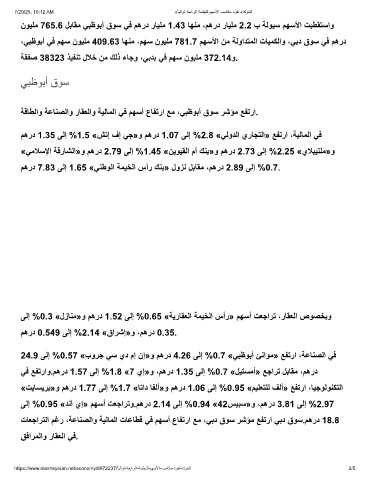 نوﯾﻠﻣ 765.6 لﺑﺎﻘﻣ ﻲﺑظوﺑأ قوﺳ ﻲﻓ مھرد رﺎﯾﻠﻣ 1.43 ﺎﮭﻧﻣ ،مھرد رﺎﯾﻠﻣ 2.2 ب ﺔﻟوﯾﺳ مﮭﺳﻷا تﺑطﻘﺗﺳاو