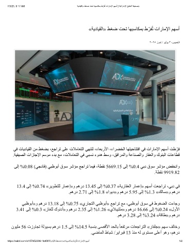 ﻲﺒظﻮﺑأ»و ﻢھرد 13.18 ﻰﻟإ %0.75 «يرﺎﺠﺘﻟا ﻲﺒظﻮﺑأ» ﻊﺟاﺮﺗ ﻊﻣ ،ﻲﺒظﻮﺑأ قﻮﺳ ﻲﻓ طﻮﻐﻀﻟا تءﺎﺟو
