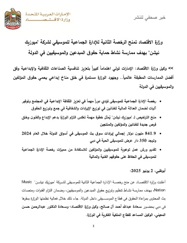 كيزويم " ةكرشل يقيسوملل ةيعامجلا ةرادلإل ةيناثلا ةصخرلا حنمت داصتقلاا ةرازو