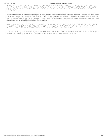 ﻰﻟإ ﺔﻓﺎﺿإ ،ﺔﻟودﻟا قاوﺳأ ﻲﻓ ﺔﯾوﯾﺣﻟا تﺎﻋﺎطﻘﻟا هذﮭﺑ ﻊﺳوﺗﻟاو ،لﻣﻌﻟا ﻲﻓ ﺔﺑﻏارﻟا تﺎﻛرﺷﻠﻟ ﺔﻟودﻟا ﺎھرﻓوﺗ ﻲﺗﻟا ﺔﯾرﺎﻣﺛﺗﺳﻻا تﺎﻧﻛﻣﻣﻟا ﻰﻠﻋ ﺔﯾﺳﻧرﻔﻟا ةرﯾزوﻟا قوط نﺑ ﷲدﺑﻋ ﻊﻠطأو