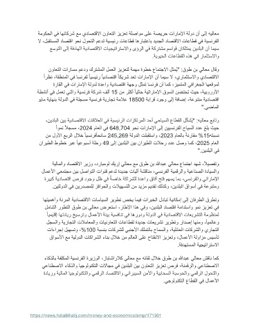 ًارظن ،ةقطنملا يف اسنرفل ًايسيئر ًايداصتقا ًاكيرش دعت تاراملإا نأ اميس لا ،يرامثتسلااو يداصتقلاا