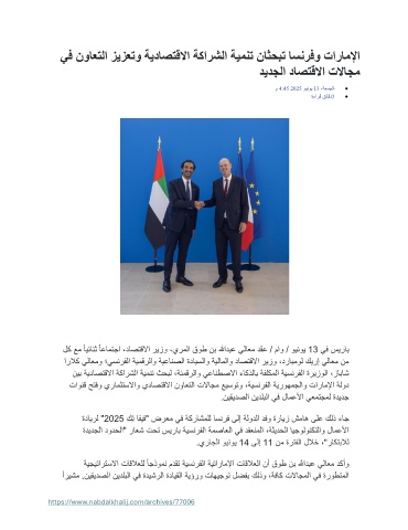 ةدايرل " 2025 كِت افيف" ضرعم يف ةكراشملل اسنرف ىلإ ةلودلا دفو ةرايز شماه ىلع كلذ ءاج