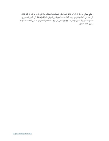 ديدجل ا داصتقلال يملاع زكرمك ةلودلا ةناكم خيسرت يف ،" 2031 تاراملإا نحن" ةيؤر تافدهتسمل