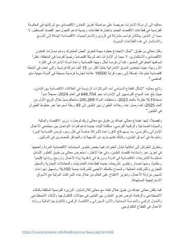 ًارظن ،ةقطنملا يف اسنرفل ًايسيئر ًايداصتقا ًاكيرش دعت تاراملإا نأ اميس لا ،يرامثتسلااو يداصتقلاا