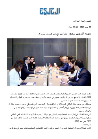 ﻤﻟﺎﻌﻟا ﺣﺎﻴﺴﻟا ﻞﻤﻌﻟا تﺎﻳﻮﻟوأ لﻮﺣ ﻦﻴﻴﻟود ءﺎﻛﺮﺷ ﻊﻣ روﺎﺸﺘﻠﻟ ﺲﻳﻮﻨﻟا ﺔﺨﻴﺷ دﻮﻬﺟ رﺎﻃإ ﻓ تاءﺎﻘﻠﻟا هﺬﻫ ﺗﺄﺗ