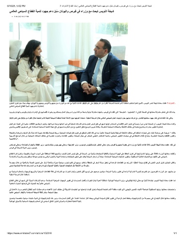 عﺎﻄﻘﻟا ﻲﻓﺎﻌﺗ ﻲﻓ ﻢﮭﺴﺗ ﻲﺘﻟا ﺔﯿﻟوﺪﻟا تﺎﻛاﺮﺸﻟا ﻢﻋدو ،ﺔﻣاﺪﺘﺴﻤﻟا ﺔﯿﺣﺎﯿﺴﻟا تﺎﮭﺟﻮﻟا ﺮﯾﻮﻄﺗ ﻲﻓ تﺎﺳرﺎﻤﻤﻟا ﻞﻀﻓأو تاﺮﺒﺨﻟا لدﺎﺒﺗ ﺔﯿﻤھأ ﺔﺸﻗﺎﻨﻤﻟ ،ﺔﯿﻧﺎﻧﻮﯿﻟا ﺔﺣﺎﯿﺴﻟا ةﺮﯾزو ،ﻲﻧﺎﯾﻮﻟﺎﻔﯿﻛ ﺎﻐﻟوأ ﻲﻟﺎﻌﻣ ﻊﻣ ًﺎﯿﺋﺎﻨﺛ ًﺎﻋﺎﻤﺘﺟا ﺲﯾﻮﻨﻟا ﺔﺨﯿﺷ ةدﺎﻌﺳ تﺪﻘﻋ ﺎﻤﻛ