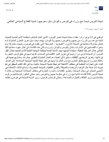 6/16/25, 5:02 PM ﻲﻣﻟﺎﻌﻟا ﻲﺣﺎﯾﺳﻟا عﺎطﻘﻟا ﺔﯾﻣﻧﺗ دوﮭﺟ مﻋد لﺑُﺳ نﺎﻧوﯾﻟاو صرﺑﻗ ﻲﻓ ءارزو ﻊﻣ ثﺣﺑﺗ سﯾوﻧﻟا ﺔﺧﯾﺷ | تارﺎﻣﻹا ءﺎﺑﻧأ ﺔﻟﺎﻛو