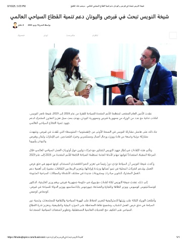 ﻲﻤﻟﺎﻌﻟا ﻲﺣﺎﻴﺴﻟا عﺎﻄﻘﻟا ﺔﻴﻤﻨﺗ ﻢﻋد نﺎﻧﻮﻴﻟاو صﺮﺒﻗ ﻲﻓ ﺚﺤﺒﺗ ﺲﻳﻮﻨﻟا ﺔﺨﻴﺷ