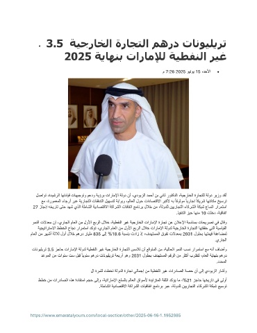 تﺎﻧوﯾﻠﯾرﺗ 3.5 زﺟﺎﺣ تارﺎﻣﻹا ﺔﻟودﻟ ﺔﯾطﻔﻧﻟا رﯾﻏ ﺔﯾﺟرﺎﺧﻟا ةرﺎﺟﺗﻟا سﻣﻼﺗ نأ ﻊﻗوﺗﻣﻟا نﻣ ،ﺔﯾﻟﺎﺣﻟا وﻣﻧﻟا بﺳﻧ رارﻣﺗﺳا ﻊﻣ ﮫﻧأ فﺎﺿأو