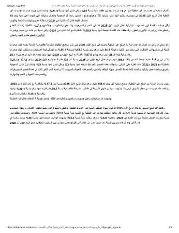 %21.1و ،%7.6 وﻣﻧﺑو ،2024 لوﻷا ﻊﺑرﻟا ﻊﻣ ﺔﻧرﺎﻘﻣ %6 وﻣﻧ ﺔﺑﺳﻧﺑ 2025 نﻣ لوﻷا ﻊﺑرﻟا لﻼﺧ مھرد رﺎﯾﻠﻣ 189.1 تﻐﻠﺑ رﯾدﺻﺗﻟا ةدﺎﻋإ تﺎﯾﻠﻣﻋ ﺔﻣﯾﻗ نأ ﻰﻟإ رﺎﺷأو