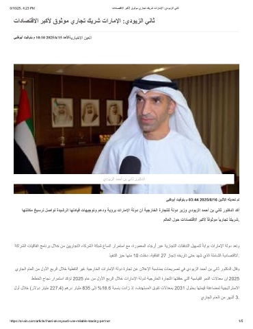 يرﺎﺟﻟا مﺎﻌﻟا نﻣ لوﻷا ﻊﺑرﻟا لﻼﺧ ﺔﯾطﻔﻧﻟا رﯾﻏ ﺔﯾﺟرﺎﺧﻟا تارﺎﻣﻹا ﺔﻟود ةرﺎﺟﺗ نﻋ نﻼﻋﻹا ﺔﺑﺳﺎﻧﻣﺑ تﺎﺣﯾرﺻﺗ ﻲﻓ يدوﯾزﻟا دﻣﺣأ نﺑ ﻲﻧﺎﺛ روﺗﻛدﻟا لﺎﻗو