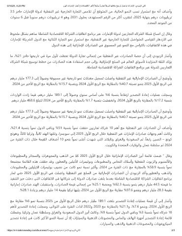 رﺎﻤﺛ ﻲﻨﺟ 2025 لوألا ﻊﺑﺮﻟا ﻲﻓ ﺖﻠﺻاو ﺔﻴﻄﻔﻨﻟا ﺮﻴﻏ ﻊﻠﺴﻟا ﻦﻣ ﺔﻴﺗارﺎﻣإلا تاردﺎﺼﻟا نأ يدﻮﻳﺰﻟا ﺪﻛأو.رﻮﻄﻌﻟاو ﺐﻫﺬﻟاو