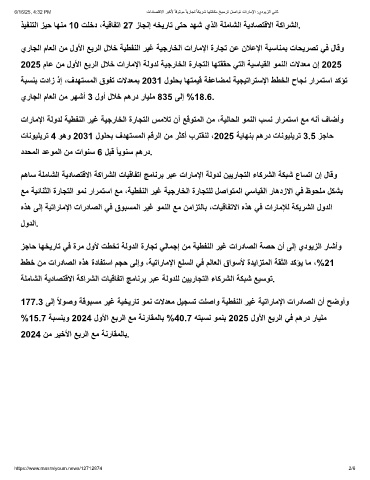 تارﺎﻣﻹا ﺔﻟودﻟ ﺔﯾطﻔﻧﻟا رﯾﻏ ﺔﯾﺟرﺎﺧﻟا ةرﺎﺟﺗﻟا سﻣﻼﺗ نأ ﻊﻗوﺗﻣﻟا نﻣ ،ﺔﯾﻟﺎﺣﻟا وﻣﻧﻟا بﺳﻧ رارﻣﺗﺳا ﻊﻣ ﮫﻧأ فﺎﺿأو