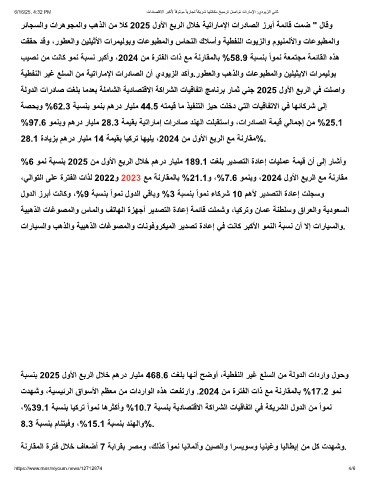 %6 وﻣﻧ ﺔﺑﺳﻧﺑ 2025 نﻣ لوﻷا ﻊﺑرﻟا لﻼﺧ مھرد رﺎﯾﻠﻣ 189.1 تﻐﻠﺑ رﯾدﺻﺗﻟا ةدﺎﻋإ تﺎﯾﻠﻣﻋ ﺔﻣﯾﻗ نأ ﻰﻟإ رﺎﺷأو