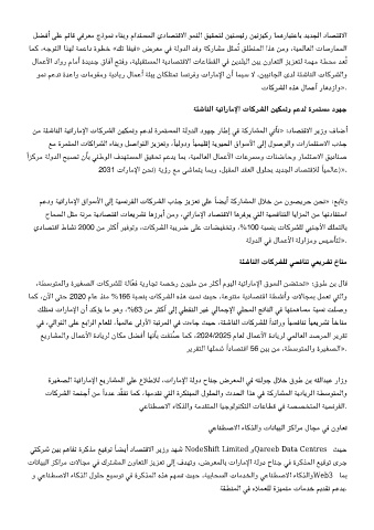 ﻦﻣ ﺔﺌﺷﺎﻨﻟا ﺔﻴﺗارﺎﻣﻹا تﺎﻛﺮﺸﻟا ﻦﻴﻤﺗو ﻢﻋﺪﻟ ةﺮﻤﺘﺴﻤﻟا ﺔﻟوﺪﻟا دﻮﻬﺟ رﺎﻃإ ﻓ ﺔﻛرﺎﺸﻤﻟا ﺗﺄﺗ» :دﺎﺼﺘﻗﻻا ﺮﻳزو فﺎﺿأ