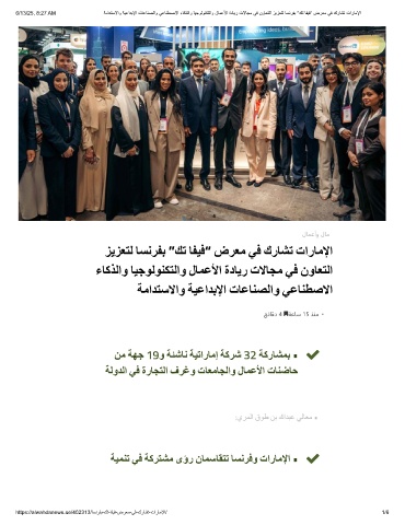 6/13/25, 8:27 AM ﺔﻣادﺗﺳﻻاو ﺔﯾﻋادﺑﻹا تﺎﻋﺎﻧﺻﻟاو ﻲﻋﺎﻧطﺻﻻا ءﺎﻛذﻟاو ﺎﯾﺟوﻟوﻧﻛﺗﻟاو لﺎﻣﻋﻷا ةدﺎﯾر تﻻﺎﺟﻣ ﻲﻓ نوﺎﻌﺗﻟا زﯾزﻌﺗﻟ ﺎﺳﻧرﻔﺑ "كﺗ ﺎﻔﯾﻓ" ضرﻌﻣ ﻲﻓ كرﺎﺷﺗ تارﺎﻣﻹا