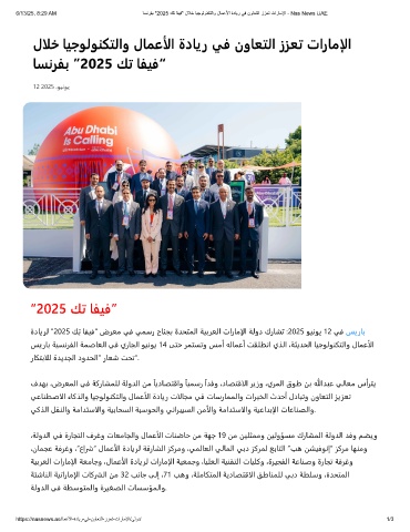 6/13/25, 8:29 AM ﺎﺳﻧرﻔﺑ "2025 كﺗ ﺎﻔﯾﻓ" لﻼﺧ ﺎﯾﺟوﻟوﻧﻛﺗﻟاو لﺎﻣﻋﻷا ةدﺎﯾر ﻲﻓ نوﺎﻌﺗﻟا ززﻌﺗ تارﺎﻣﻹا - Nas News UAE