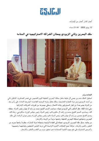ﺪﻓو سأر ﻠﻋ ﺔﻣﺎﻨﻤﻟا ﺔﻴﻨﻳﺮﺤﺒﻟا ﺔﻤﺻﺎﻌﻠﻟ ﺔﻴﻤﺳﺮﻟا ﻪﺗرﺎﻳز لﻼﺧ ﻚﻟذو ،ﺔﻴﺟرﺎﺨﻟا ةرﺎﺠﺘﻠﻟ ﺔﻟود ﺮﻳزو يدﻮﻳﺰﻟا ﺪﻤﺣأ ﻦﺑ