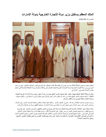 لامعأ يف ةكراشملل ةكلمملل هترايز ةبسانمب هتللاج ىلع ملاسلل ةدحتملا ةيبرعلا تاراملإا ةلودب ةيجراخلا ةراجتلل ةلود ريزو يدويزلا
