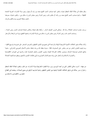 6/13/25, 9:04 AM ﺔﯾﻧﯾرﺣﺑﻟا مﺎﯾﻷا ﺔﻔﯾﺣﺻ - تارﺎﻣﻹا ﺔﻟودﺑ ﺔﯾﺟرﺎﺧﻟا ةرﺎﺟﺗﻠﻟ ﺔﻟود رﯾزو يدوﯾزﻟا دﻣﺣأ نﺑ ﻲﻧﺎﺛ روﺗﻛدﻟا لﺑﻘﺗﺳﯾ مظﻌﻣﻟا كﻠﻣﻟا ﺔﻟﻼﺟ