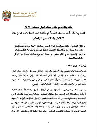 نﺎتسك�زوأ و تارﺎﻤﻹا ﻲﻓ لﺎمﻋﻷا تﺎﻌمتجﻤ نیﺒ ط�رﻟا ز�زﻌتﻟ ةزرﺎ� ﺔطحﻤ "دنﻘشط – ﺎ��وتسﻔﻨإ" ﻞكشﺘ •