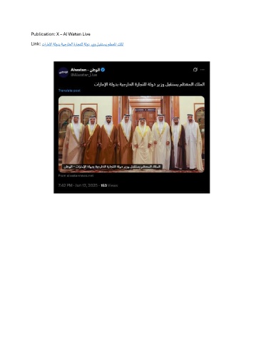 Publication: X – Al Watan Live Link: تاراملإا ةلودب ةيجراخلا ةراجتلل ةلود ريزو لبقتسي مظعلما كللما