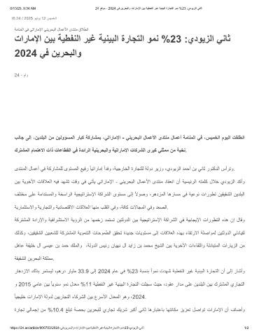 6/13/25, 9:34 AM 24 ﻊﻗوﻣ - 2024 ﻲﻓ نﯾرﺣﺑﻟاو تارﺎﻣﻹا نﯾﺑ ﺔﯾطﻔﻧﻟا رﯾﻏ ﺔﯾﻧﯾﺑﻟا ةرﺎﺟﺗﻟا وﻣﻧ %23 :يدوﯾزﻟا ﻲﻧﺎﺛ