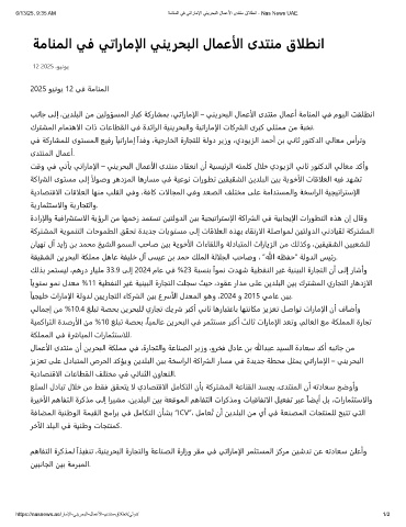 6/13/25, 9:35 AM ﺔﻣﺎﻧﻣﻟا ﻲﻓ ﻲﺗارﺎﻣﻹا ﻲﻧﯾرﺣﺑﻟا لﺎﻣﻋﻷا ىدﺗﻧﻣ قﻼطﻧا - Nas News UAE
