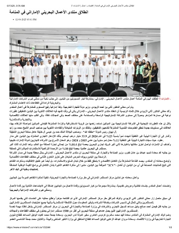 6/13/25, 9:35 AM 7 تارﺎﻣﻻا | لﺎﻣﻋا و دﺎﺻﺗﻗا | ﺔﻣﺎﻧﻣﻟا ﻲﻓ ﻲﺗارﺎﻣﻹا ﻲﻧﯾرﺣﺑﻟا لﺎﻣﻋﻷا ىدﺗﻧﻣ قﻼطﻧا