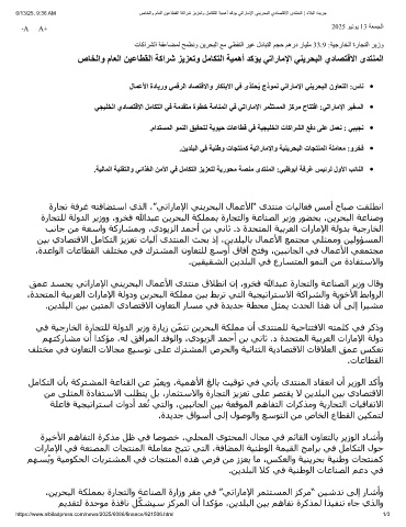 6/13/25, 9:36 AM صﺎﺧﻟاو مﺎﻌﻟا نﯾﻋﺎطﻘﻟا ﺔﻛارﺷ زﯾزﻌﺗو لﻣﺎﻛﺗﻟا ﺔﯾﻣھأ دﻛؤﯾ ﻲﺗارﺎﻣﻹا ﻲﻧﯾرﺣﺑﻟا يدﺎﺻﺗﻗﻻا ىدﺗﻧﻣﻟا | دﻼﺑﻟا ةدﯾرﺟ